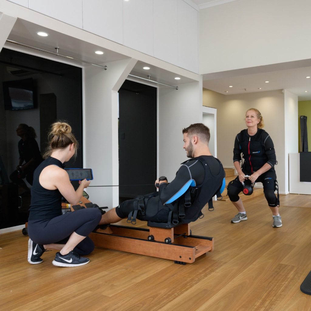 EMS training: EMS (Electro Muscle Stimulation) can enhance neuromuscular connection by directly stimulating dormant muscle fibres – helping your brain feel and find the right muscles again.